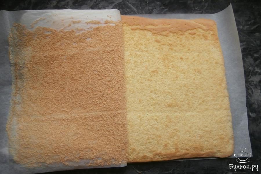 9. Выпекать бисквитный корж в разогретой духовке при 180 град. 15 минут. Верх коржа должен быть сухим.