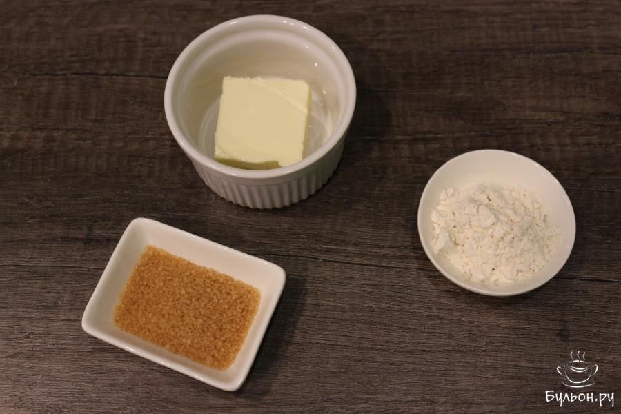 3. Мягкое масло смешаем с мукой. Через час в ковш добавляем смешанные масло и муку, а также тростниковый сахар.