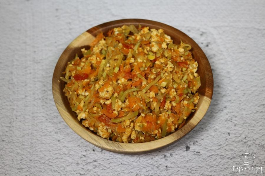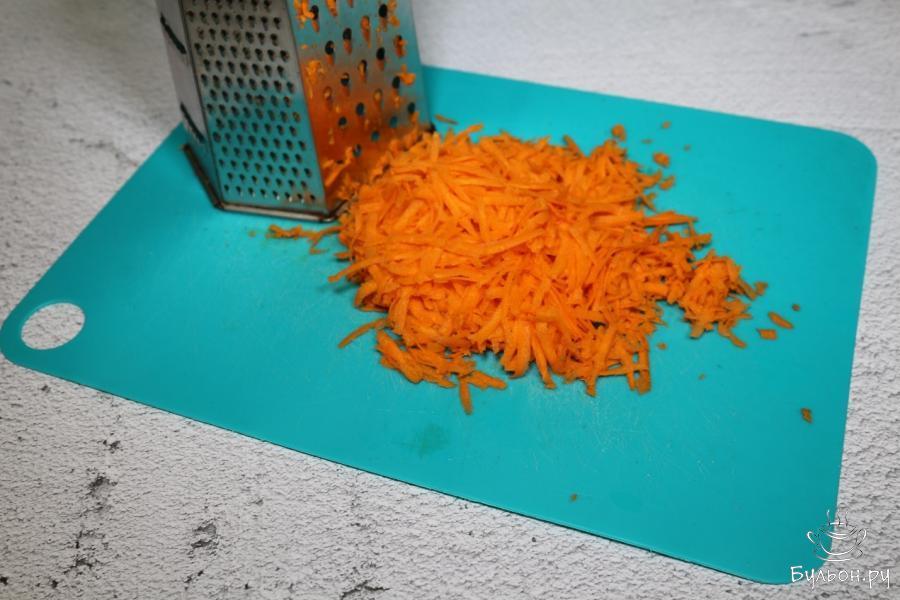 1. Овощи и куриное филе моем и обсушиваем, снимаем кожицу, чистим. В начале занимаемся овощами. Морковь натрем на терке крупно.