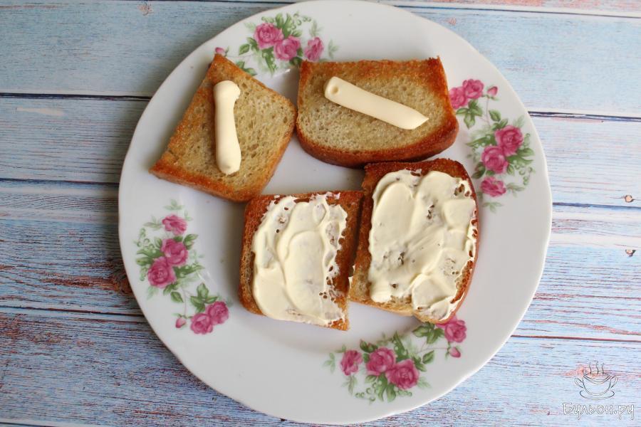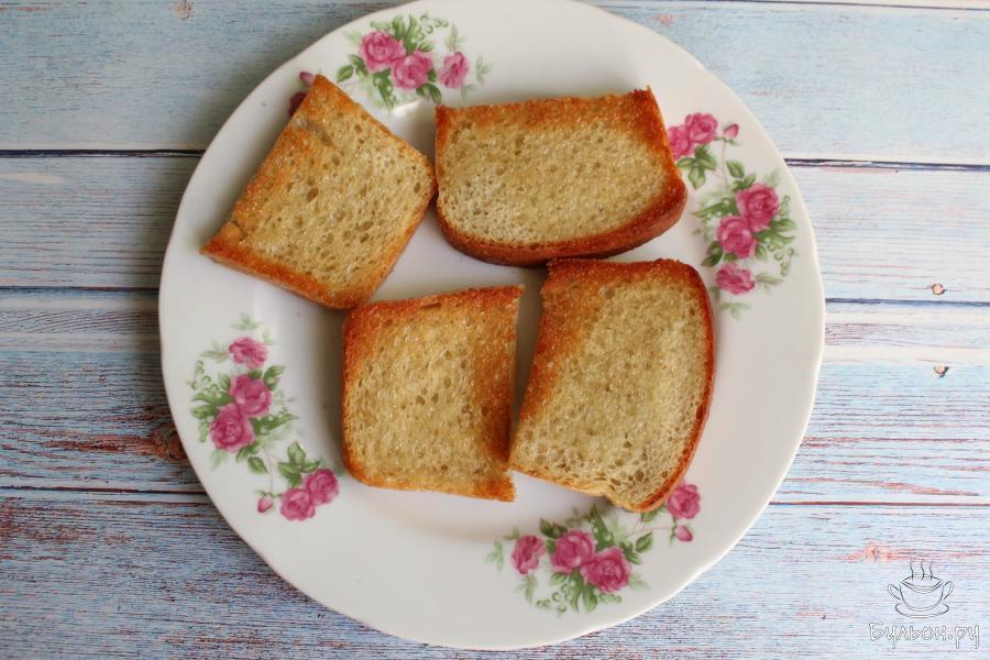 2. Хлеб режем на небольшие кусочки и обжариваем хлеб с двух сторон на разогретом масле до румяного цвета.