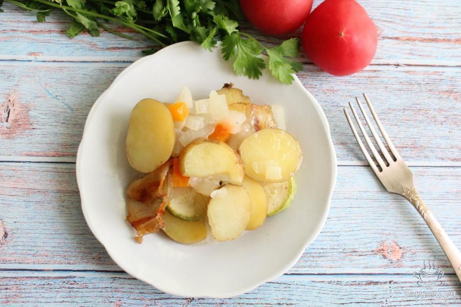 Если вы не хотите долго стоять у плиты, попробуйте приготовить овощи с салом в духовке по этому рецепту. Это блюдо запекается само, ничего не нужно мешать и постоянно быть на кухне. В это блюдо всегда можно добавить и другие свои любимые овощи, пряности, зелень и каждый раз получить новый вкус. Овощи получаются сочные, нежные, ароматные и сытные. Готовится блюдо легко и не займет много вашего времени на приготовление.