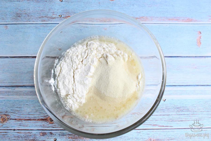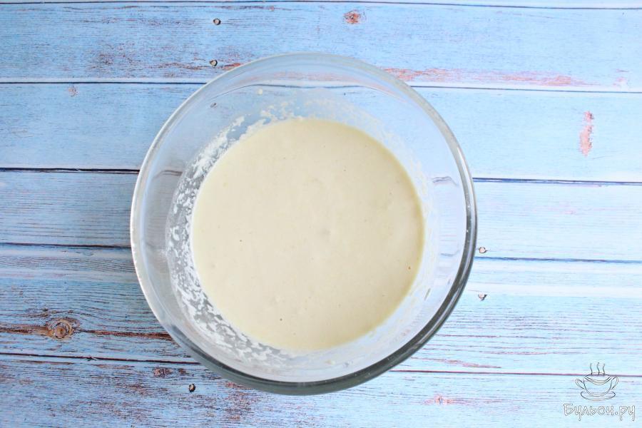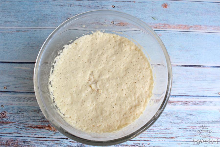 5. Снова хорошо перемешиваем и у нас получится не очень густое тесто. Убираем посуду с тестом в тепло на час.
