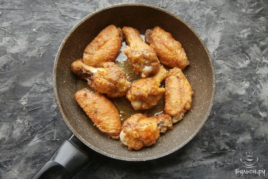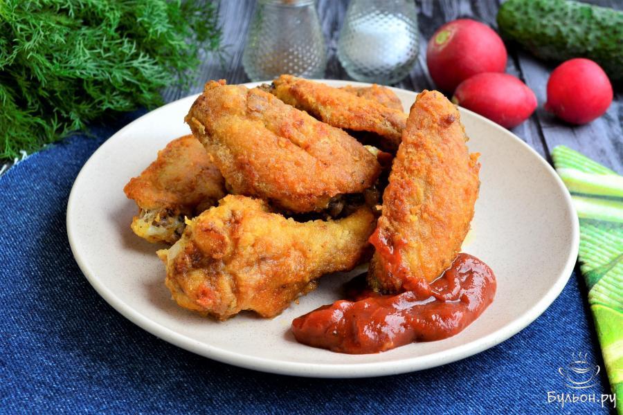 Если вы хотите полакомиться хрустящими крылышками, не обязательно готовить их во фритюре. Крылышки можно пожарить на сковороде и в не слишком большом количестве масла. Именно таким рецептом я с вами хочу поделиться. Крылышки получаются в меру острыми, очень вкусными, очень хрустящими и очень аппетитными. Они отлично подойдут в качестве закуски к пиву. Готовятся такие крылышки не сложно, обязательно попробуйте.