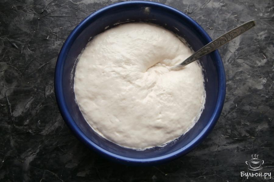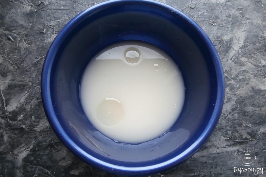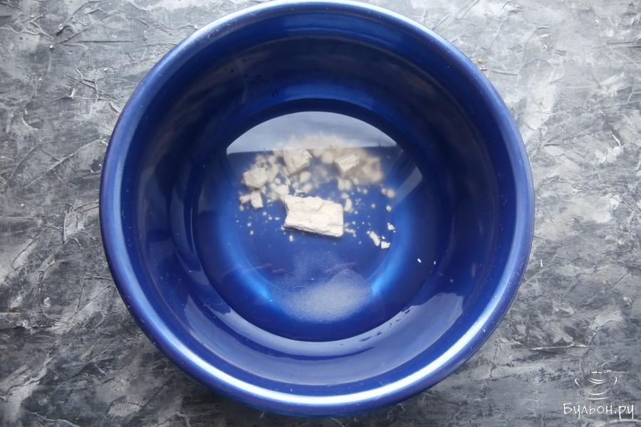 1. В теплую воду (250 мл) добавить 10 г свежих дрожжей, распустить их в воде, добавить 1 ч. ложку сахарного песка.