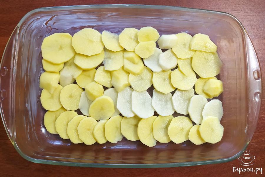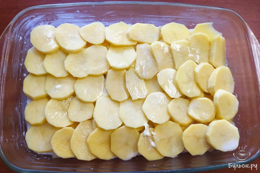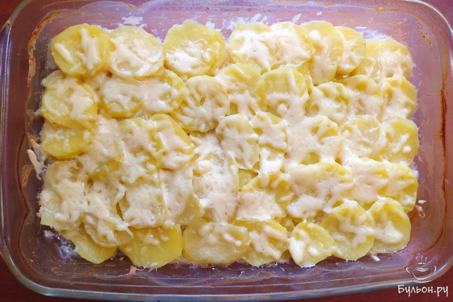 6. Посолить, налить молоко, полить растопленным сливочным маслом. Накрыть фольгой и поставить в разогретый духовой шкаф на 45 минут. Выпекать при 180 градусах.