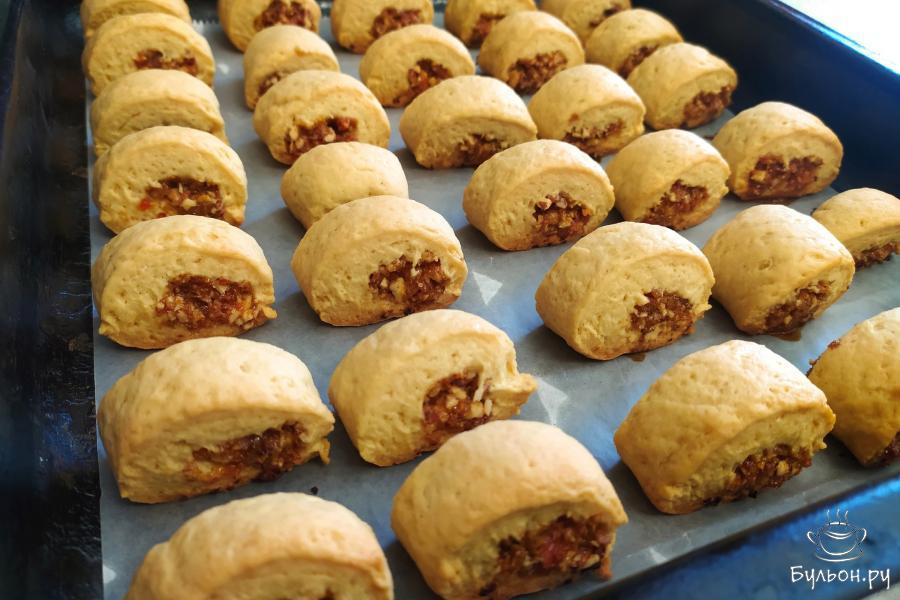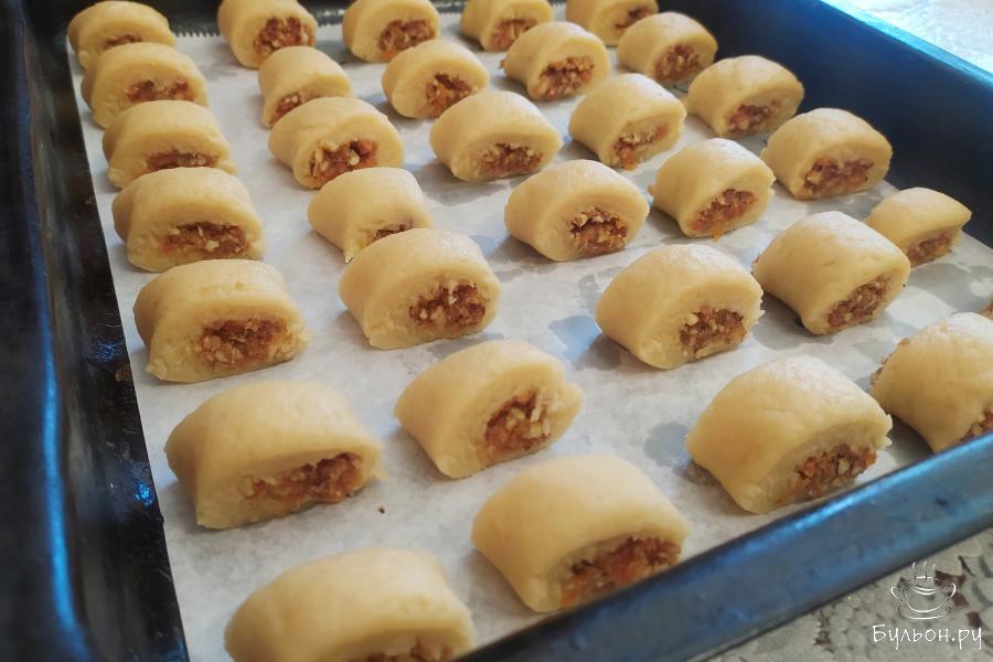 12. Положить заготовки на противень с пекарской бумагой. Выпекать в прогретой духовке при 180 градусах, примерно 20 минут.