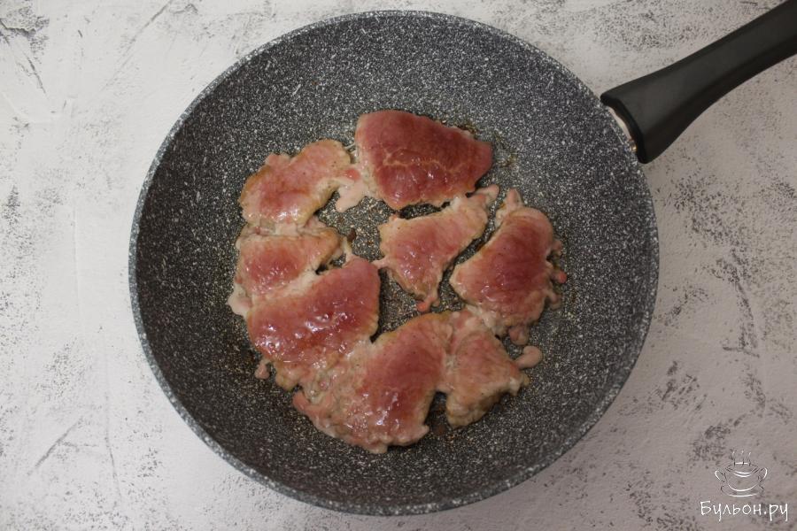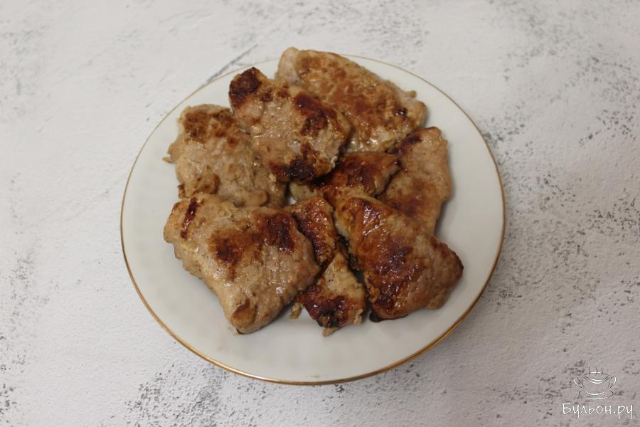 6. Обжаренные кусочки свинины выкладываем на тарелку и подаем на стол со свежими овощами или любым другим гарниром.