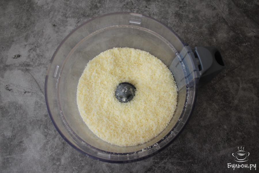 1. Если пармезан кусковой, а не натертый, то сначала натрем его на мелкой терке или с помощью блендера, опять же, используя мелкие зубчики.