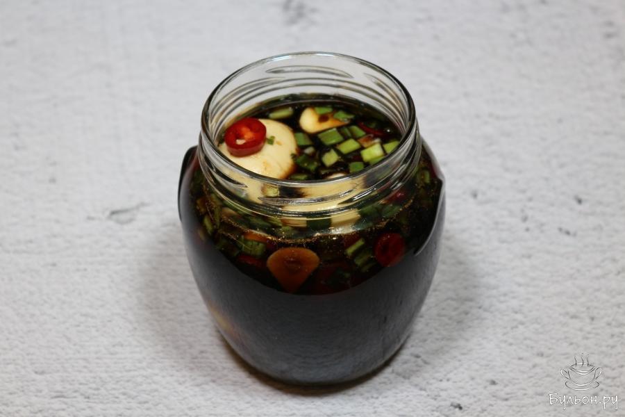 6. Все это заливаем подготовленным ранее маринадом. Банку закрываем и отправляем на сутки в холодильник.