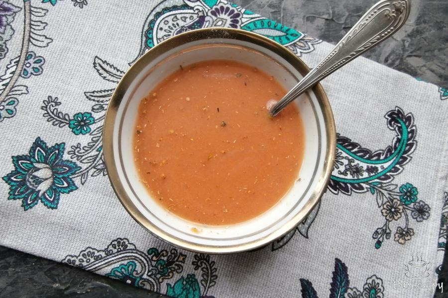 5. Приготовить соус для заливки: к томатной пасте или любому томатному соусу добавить соль, приправу, сахар и уксус.