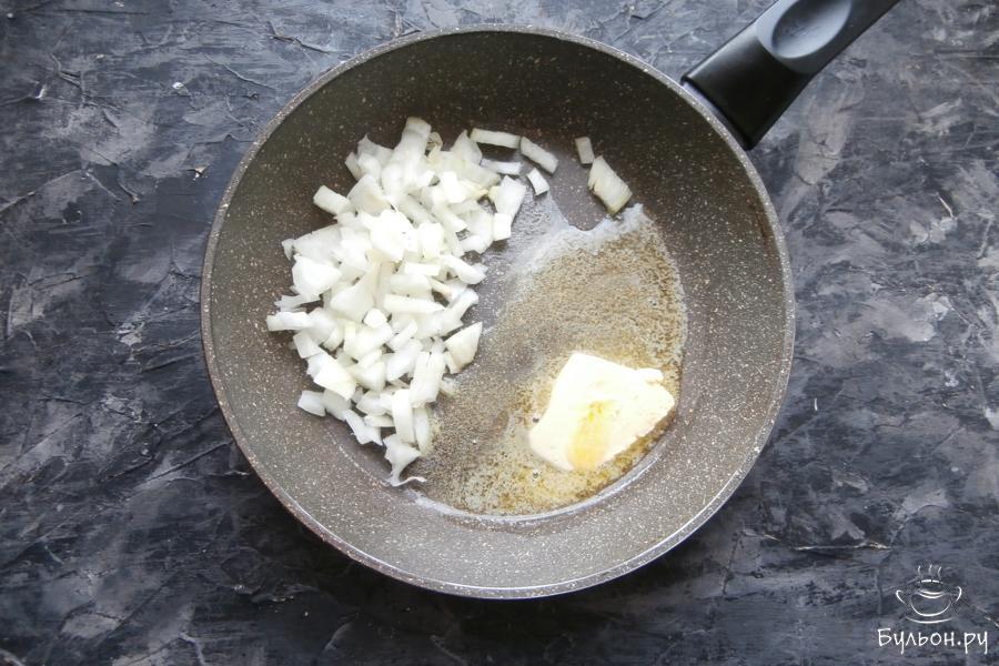 4. Сливочное масло растопить в сковороде, выложить подготовленный лук. Обжарить лук несколько минут (3-4 мин.).