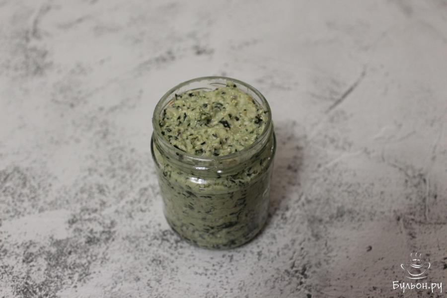 5. Все содержимое блендера тщательно взбейте. Если соус получился очень густой, добавьте еще немного лимонного сока и растительного масла. Также досолите соус по вкусу.
