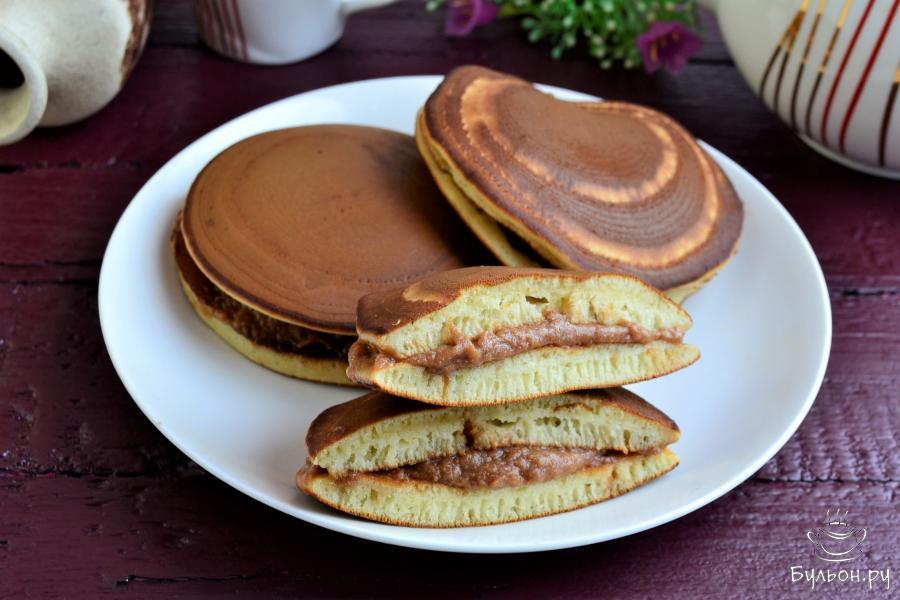 "Дораяки" или медовые блины - это десерт из японской кухни, представляющий собой бисквитные блинчики, похожие на американские панкейки. Эти блины готовят в Японии с начинкой из сладкой бобовой пасты. В нашем случае "Дораяки" можно прослоить вареной сгущенкой, шоколадной пастой или любимым кремом, а можно кушать и без начинки. Эти блины невероятно нежные, мягкие, пышные, и, конечно же, очень вкусные. Готовятся блины быстро и просто, попробуйте.