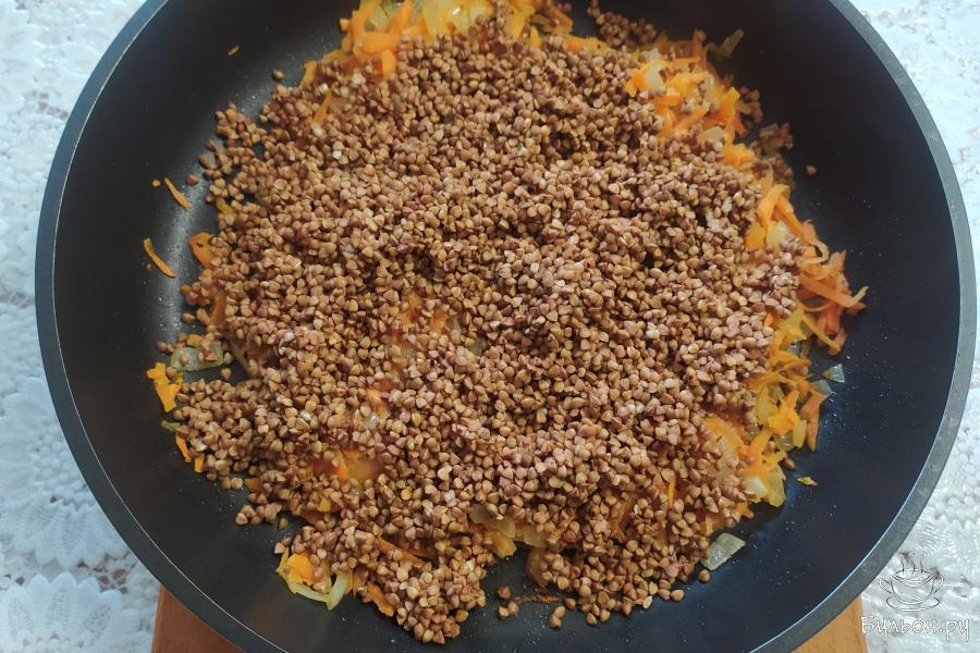 4. Морковку почистить, натереть на крупной терке. Обжарить несколько минут (до мягкости морковки) вместе с луком.