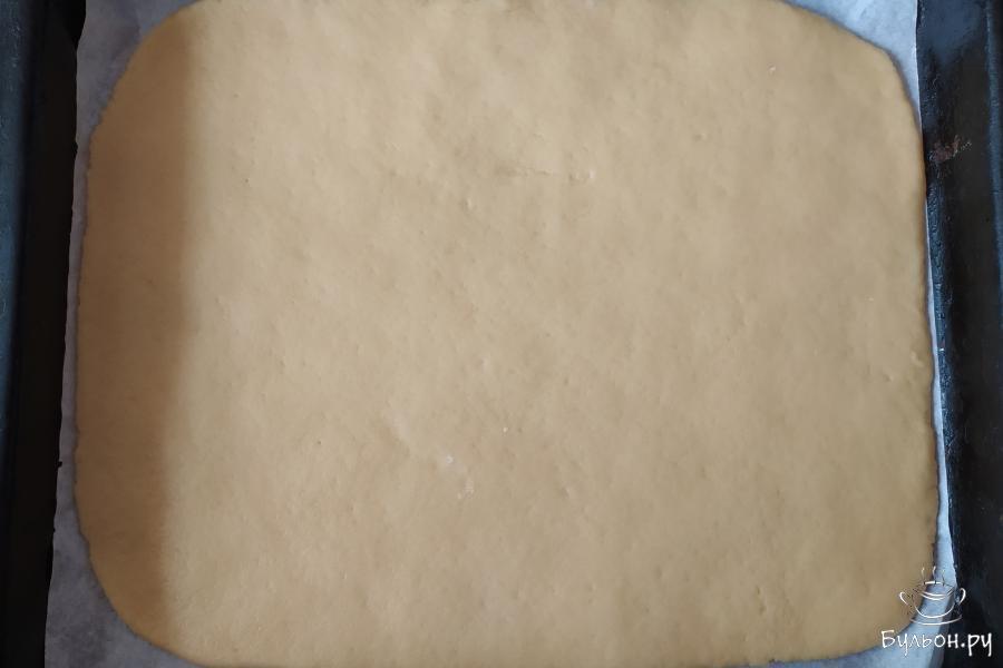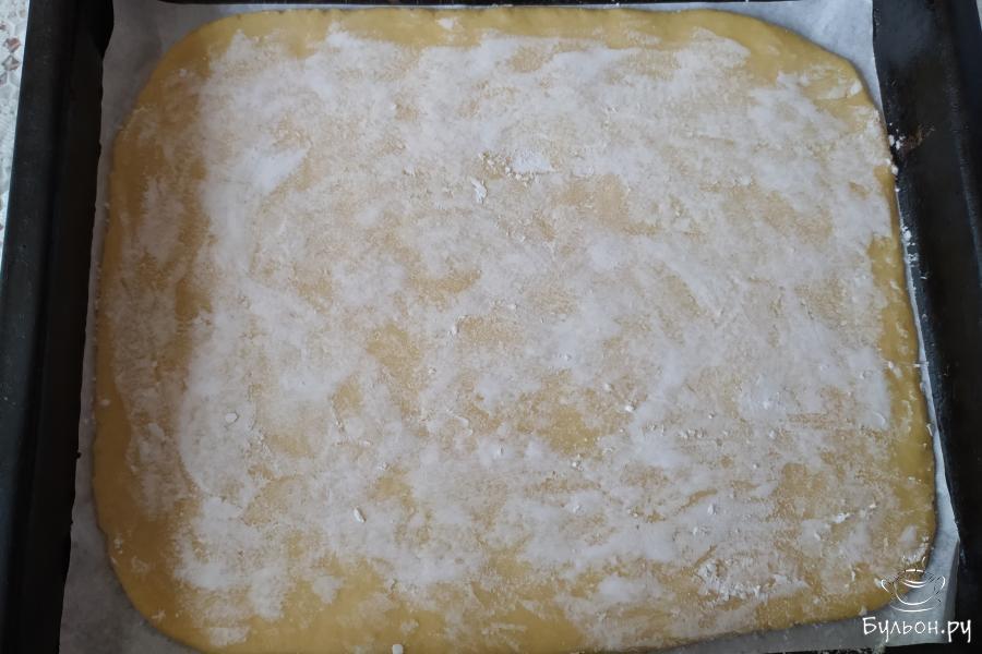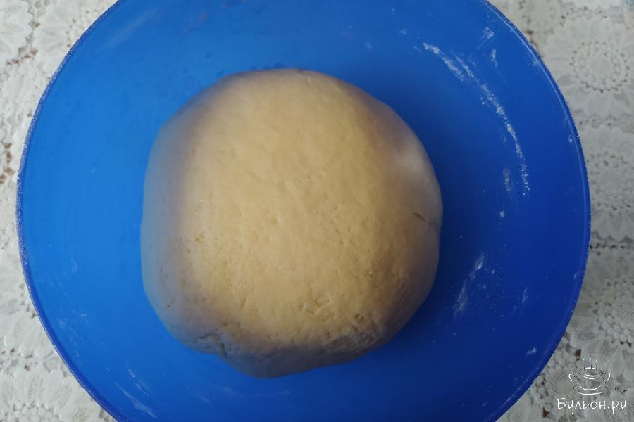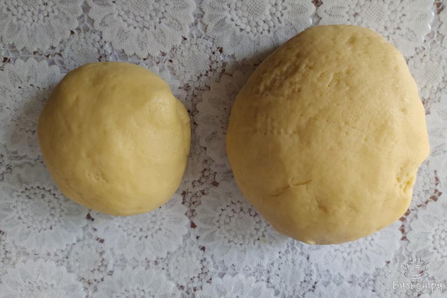 4. Поделить тесто на две части: побольше и поменьше. Меньшую часть теста поместить в морозилку на пол часа, завернув в пакет.
