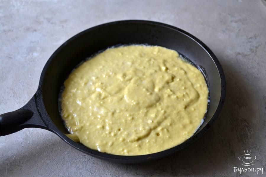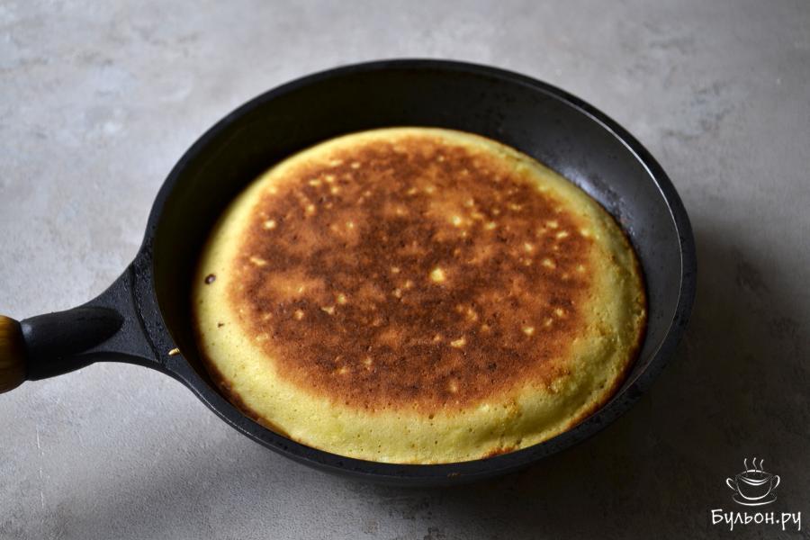 8. Когда верхняя часть лепешки перестанет быть жидкой и на ней появятся дырочки, пора лепешку переворачивать.