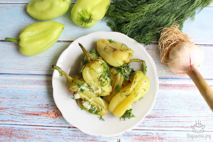 Болгарский перец, жареный целиком, с чесноком и зеленью - это вкусная, легкая и ароматная закуска, которая понравится многим. Такой перец можно подать как к повседневному столу, так и предложить во время поста или готовить для вегетарианского меню. Перец получается сочный, вкусный, чем дольше он настаивается, тем вкуснее становится. Для приготовления этой закуски желательно выбирать самый мелкий зеленый болгарский перец, тогда его очень удобно есть и он красиво смотрится на столе.