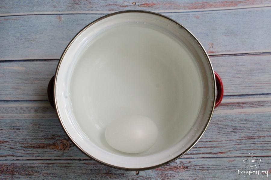 3. Яйцо сварим вкрутую. После закипания воды варим яйцо 8-10 минут. Воду сольем, остудим и почистим яйцо.