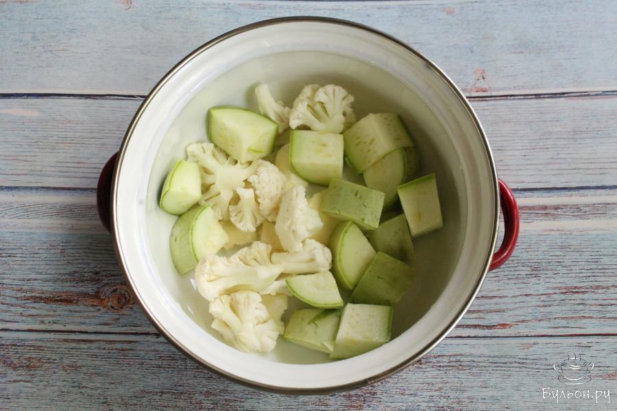 Суп-пюре из кабачков и цветной капусты подойдет для разгрузочных дней или если вам хочется что-то легкое на обед. Суп готовится легко, а в сезон овощей такой суп можно готовить без особых затруднений, все есть под рукой. Суп получается нежный, кремовый, насыщенный и вкусный. Суп можно, по желанию, дополнить своими любимыми пряностями или добавить измельченную ароматную зелень. Суп подходит для вегетарианского меню, а если сливочное масло заменить оливковым, то и для постного стола.