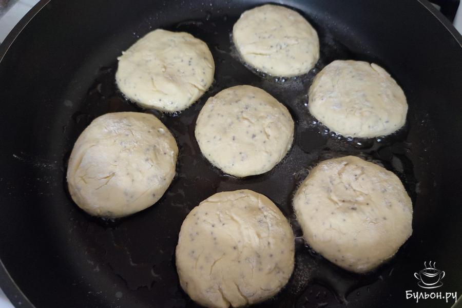 5. На сковороде нагреть масло. Поджарить сырники с двух сторон до золотистого цвета. По несколько минут с каждой стороны.