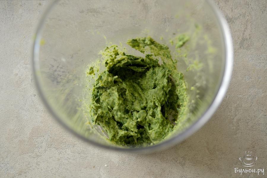 Шпинат - интересное растение. И салат с ним можно сделать, и супчик сварить, и даже бисквит зеленого цвета испечь. А можно со шпинатом приготовить быстрый и очень вкусный паштет, который подать как самостоятельное блюдо или заполнить им половинки вареных куриных яиц. Такую закуску можно сделать для праздничного стола или разнообразить повседневное меню. Закуску со шпинатом лучше готовить перед самой подачей на стол, заранее делать ее не стоит.