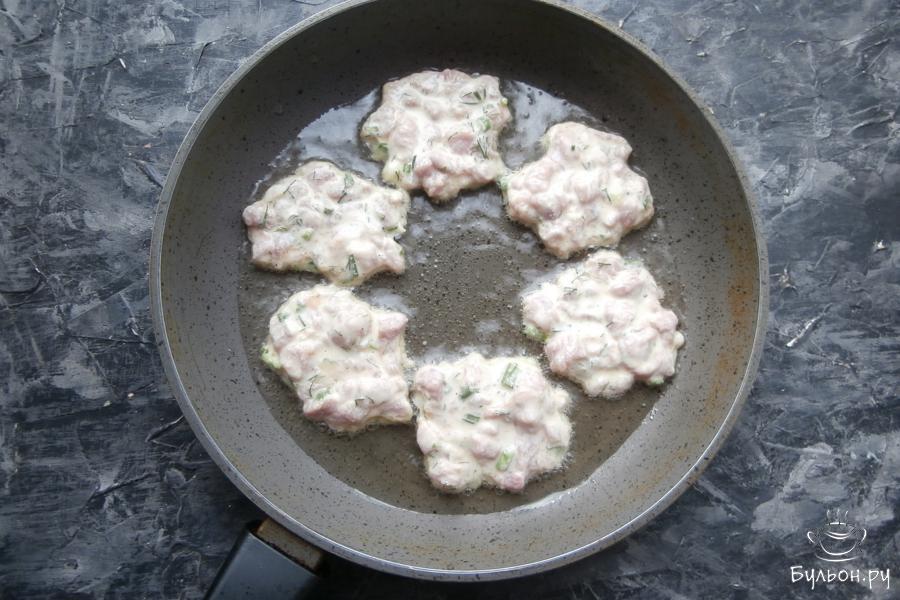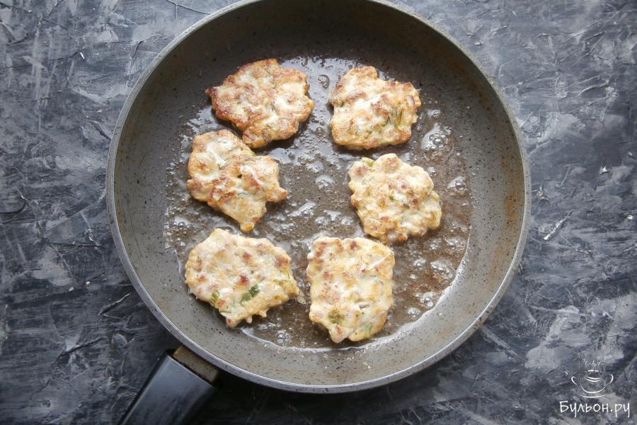 8. Жарить котлеты минут по пять с обеих сторон - до золотистого, румяного цвета на огне чуть меньше среднего.