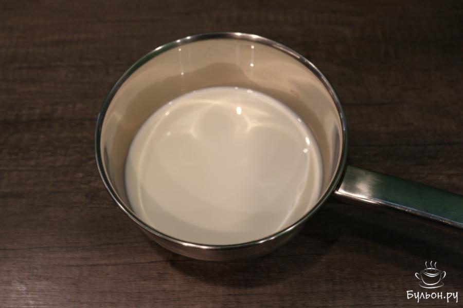 2. В ковш вливаем молоко и ставим на огонь, постоянно помешиваем, чтобы молоко не пригорало. Доводим молоко до кипения.