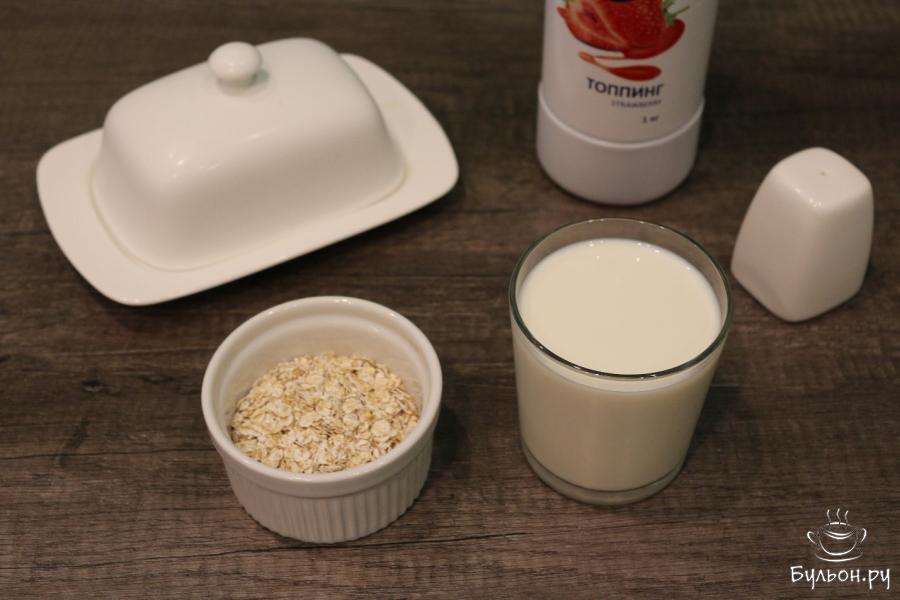 На завтрак, одним из лучших блюд, считается овсяная каша. И не просто так, ведь она питательная, легко усваивается, очень полезная и невероятно вкусная. Приготовим в этот раз овсяную кашу с клубничным топпингом. В данном рецепте используется топпинг, который применяется для мороженого, десертов, молочных коктейлей. Его можно заменить на варенье, я ем и с тем и с другим, но с топпингом мне даже больше нравится. Я готовлю довольно классический вкус, клубничный, мне очень нравится именно с ним. Но, так как, топпингов сегодня большое разнообразие, то можете выбрать его по своему усмотрению.