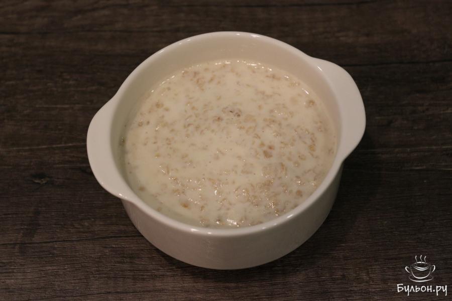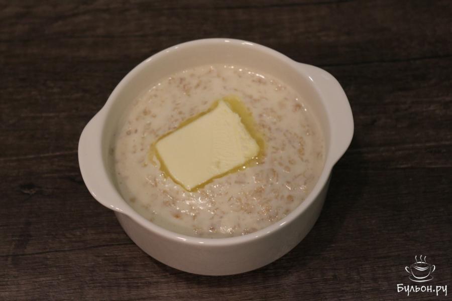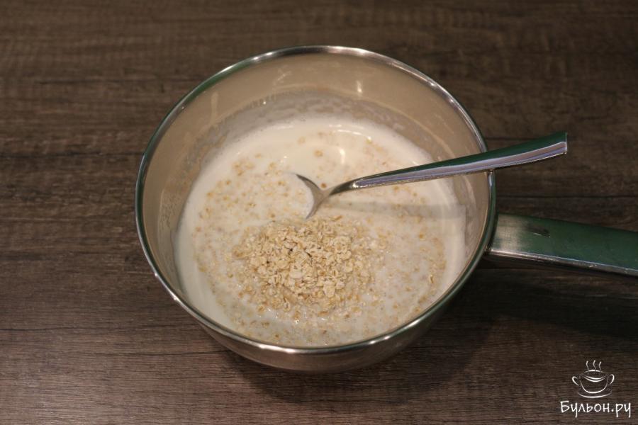 3. И сразу же всыпаем овсяные хлопья и добавляем щепотку соли. Продолжаем варить кашу и помешивать ее, но уже на несильном огне. Кашу варим 3--4 минуты, чтобы она была не слишком густая.
