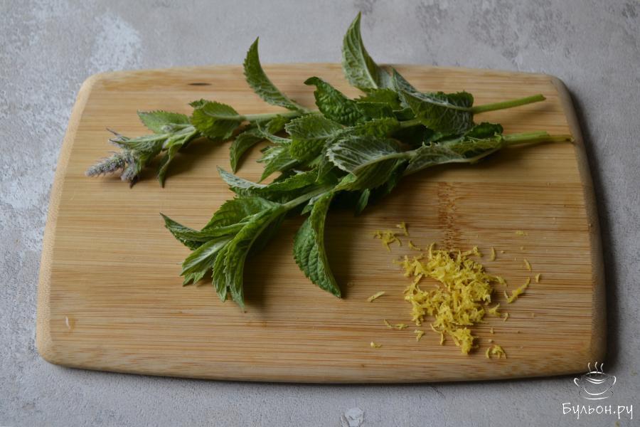 5. Веточки мяты промойте в воде и отряхните от влаги. Лимон тщательно вымойте с содой под струей горячей воды и обсушите. Снимите с лимона цедру.