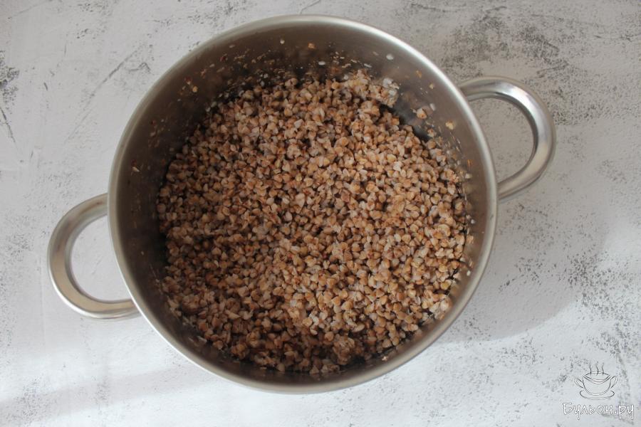 2. Чистую крупу пересыпать в кастрюлю, залить водой в соотношении 1:2 и поставить на огонь. Когда вода закипит, слегка подсолить воду, уменьшить огонь и варить гречку под закрытой крышкой от 15 до 20 минут. Готовой гречке надо дать остыть.