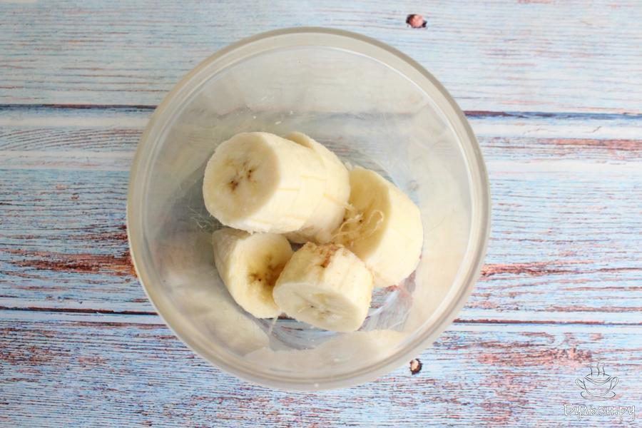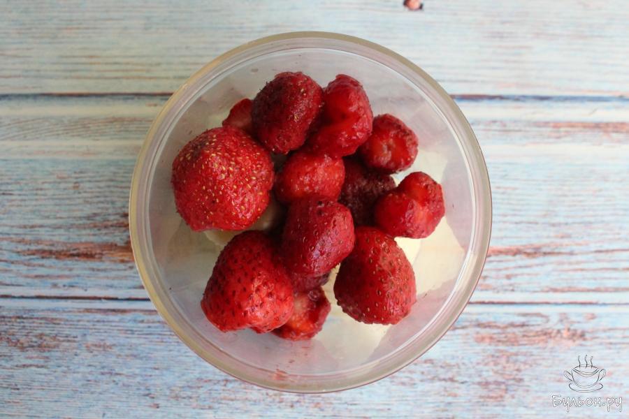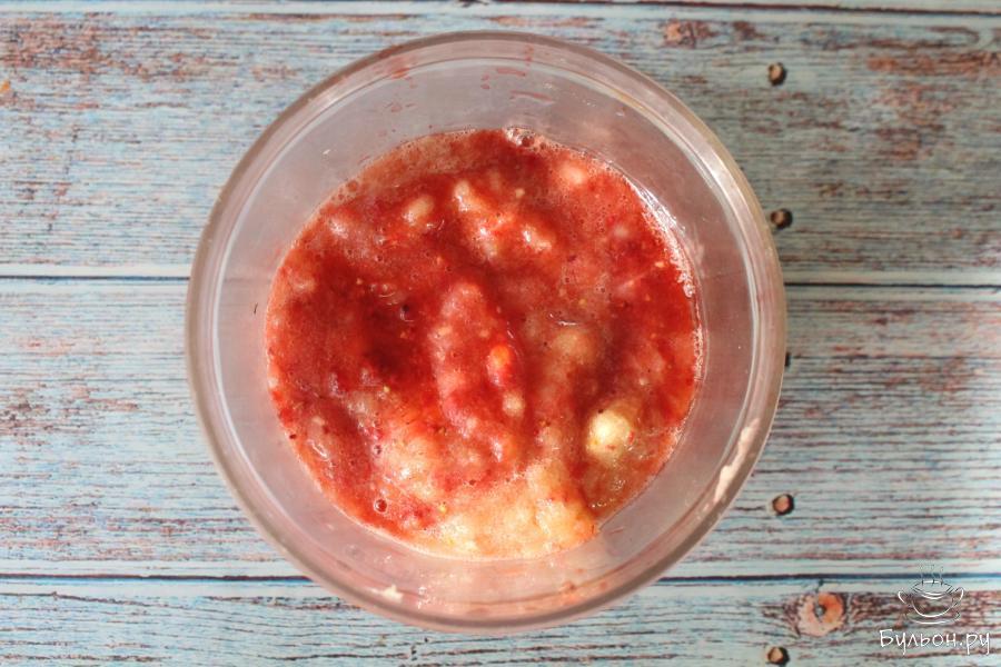 3. Измельчаем клубнику с бананом любым удобным способом. Можно воспользоваться блендером, измельчителем или мясорубкой.