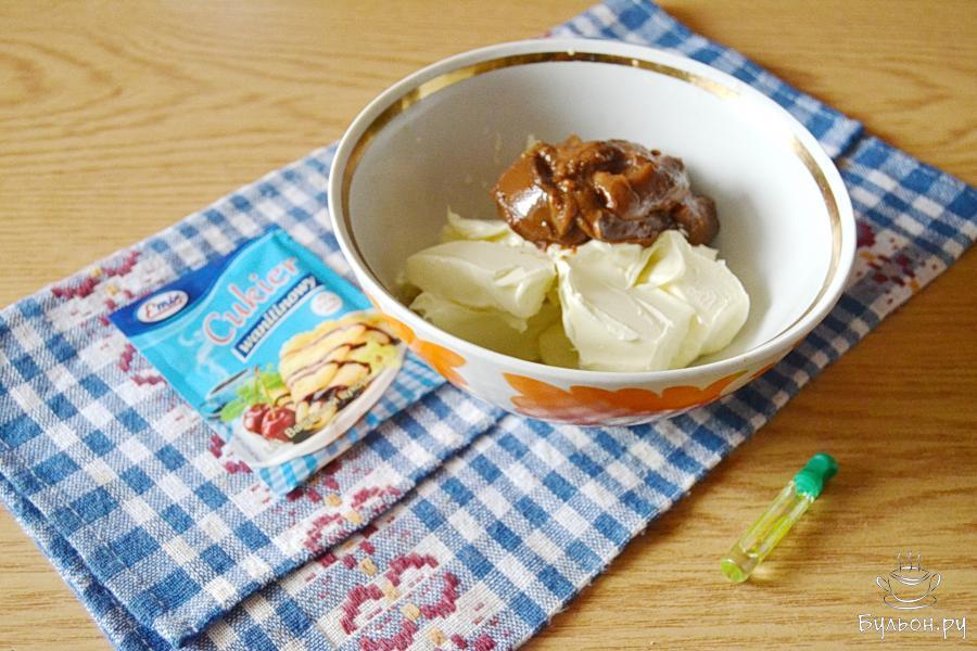 2. Добавить к маслу вареную сгущенку, ванильный сахар и ароматическую эссенцию (ароматизатор). Для крема подходит ромовый, цитрусовый, карамельный ароматизаторы. Можно использовать также ароматизатор с запахом и привкусом коньяка или же натуральный коньяк или ром.