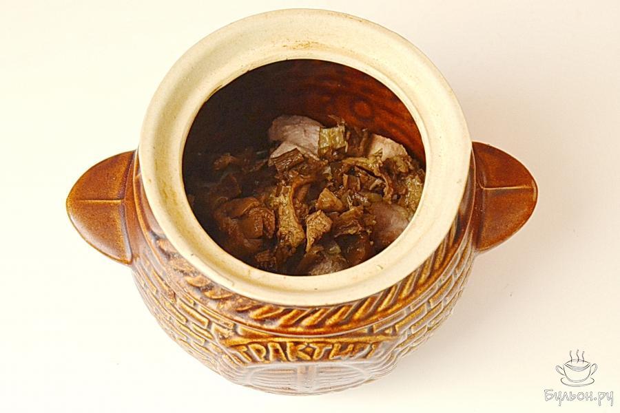 Это простое и сытное блюдо можно использовать как на каждый день, так и на праздник. Гостям понравится подача в горшочках, а блюдо, приготовленное таким образом, будет насыщено вкусом и ароматами. Вместо сушеных грибов можно использовать и свежие, особенно ароматным получится блюдо, если грибы будут лесными. Что касается мяса, то лучше всего взять свинину, курицу или индейку. Это мясо быстро готовится, а вот говядина за указанное время может остаться жестковатой.