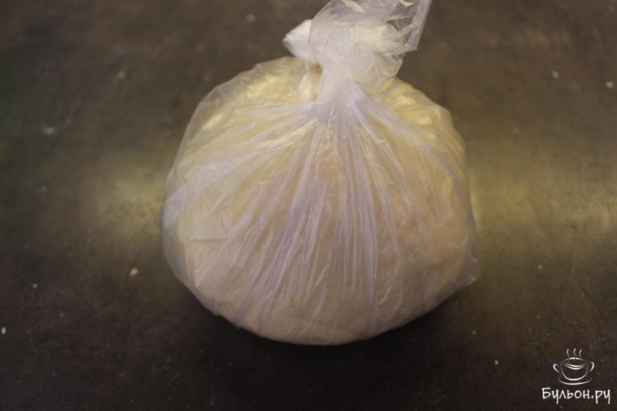 5. Собранный шар теста уберем в полиэтиленовый пакет на 20-30 минут. За счет этой процедуры, тесто станет более эластичным и удобным в работе.