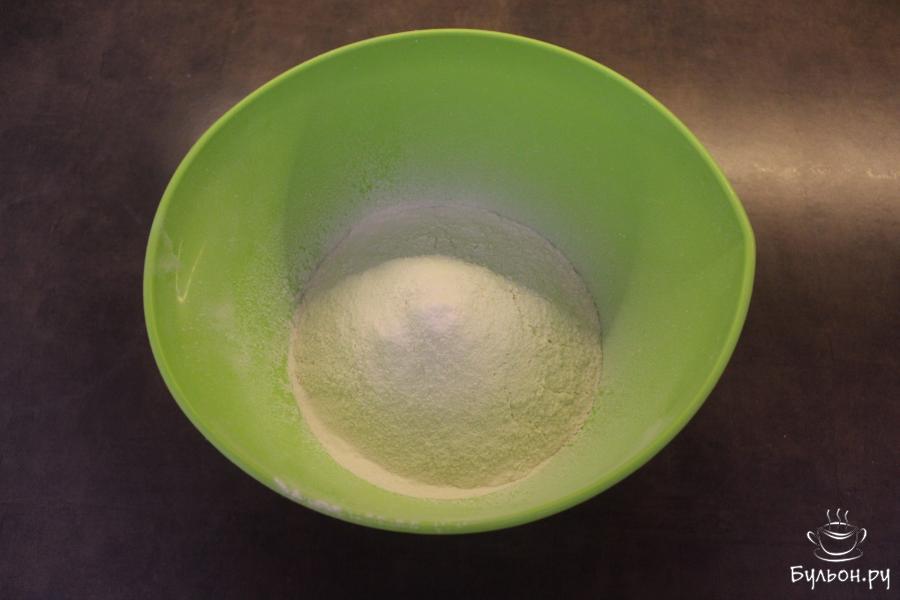 1. Как и всегда, для приготовления теста, первым делом просеем в чашу для замеса пшеничную муку высшего сорта.