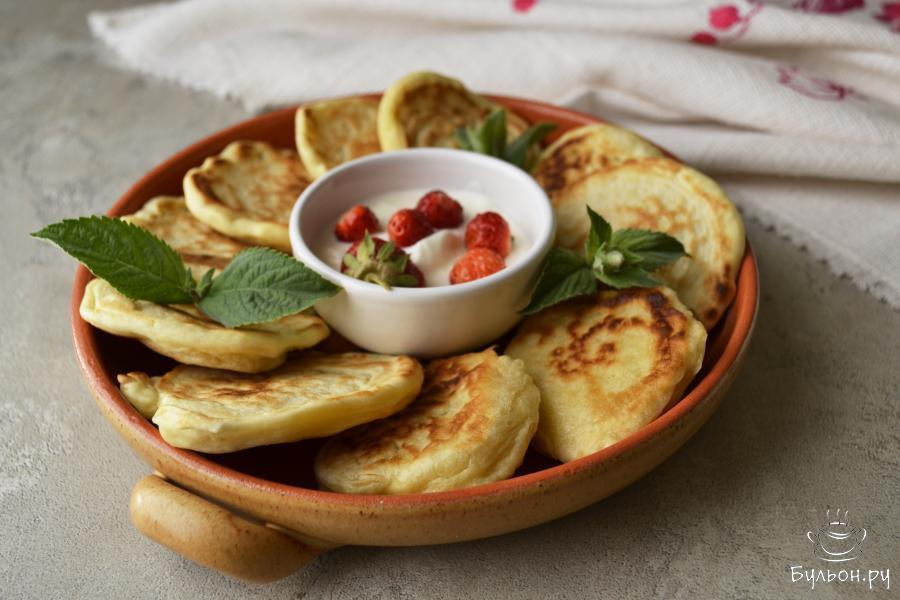 7. К оладушкам подайте сметану, варенье, мед, сгущенку, в общем на свой вкус. Нежирные, мягкие оладьи - это вкусный завтрак или перекус. Приятного аппетита!