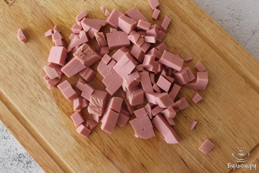 4. Яйцо, сваренное вкрутую, также нарежьте кубиками. Для одной порции хватит яйца категории С1 или С2.