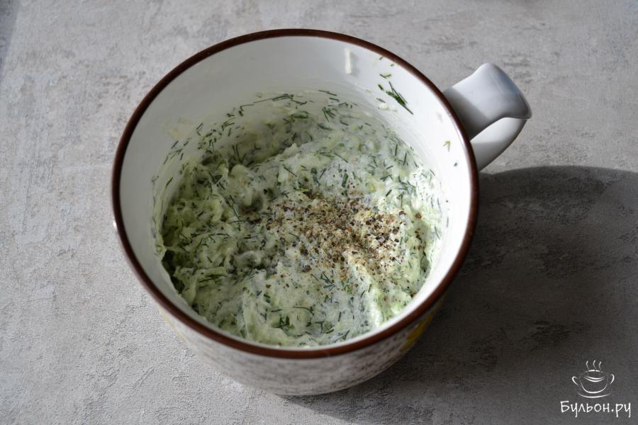 4. Перемешайте ингредиенты, посолите и посыпьте черным молотым перцем. Еще раз перемешайте. Соус готов.