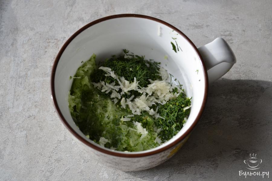 1. Один крупный или два небольших огурца, тщательно вымойте и натрите на мелкой терке. Оставьте натертые огурцы на 5-10 минут, чтобы они дали сок.