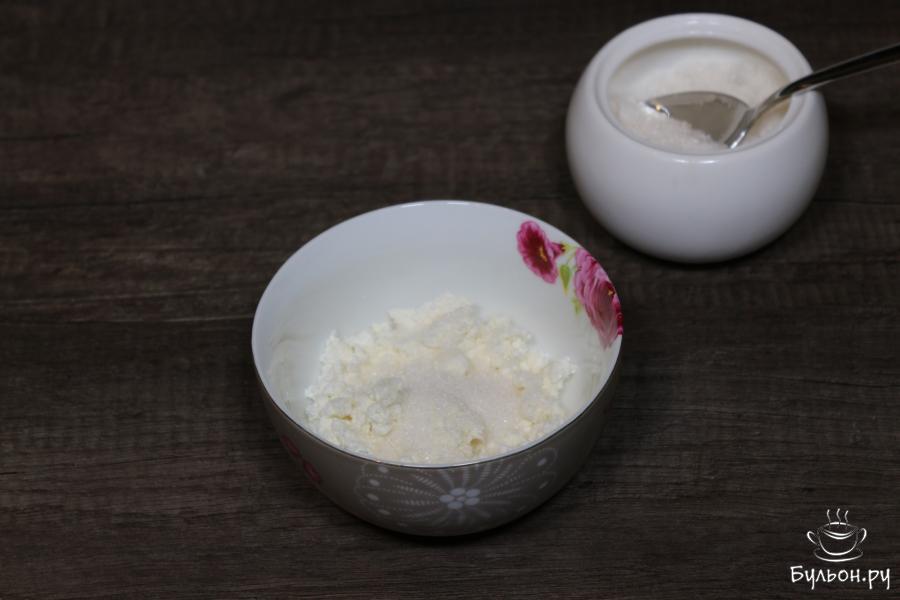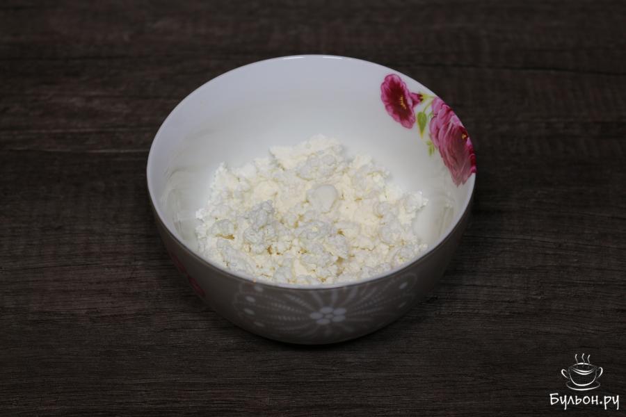 2. Возьмем хороший, качественный и вкусный творог, лучше не менее 5% жирности, чтобы было вкуснее. Положим порцию творога в блюдо, творог немного разомнем.