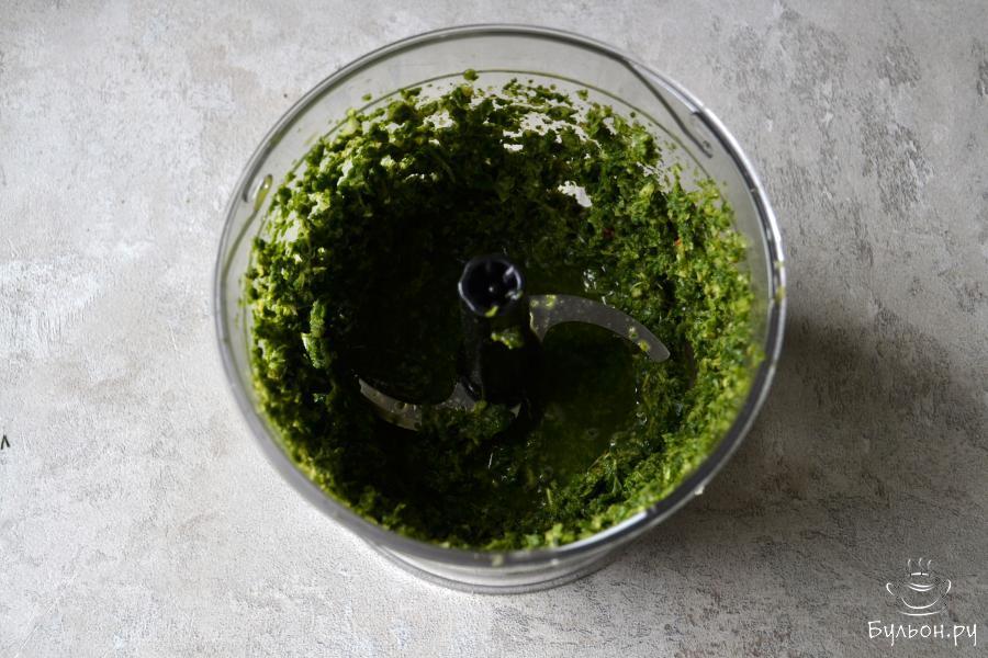 6. Измельчите зелень до однородной массы. Если необходимо, то добавьте еще немного воды, регулируя густоту соуса по желанию. Все - мятный соус Чатни готов.