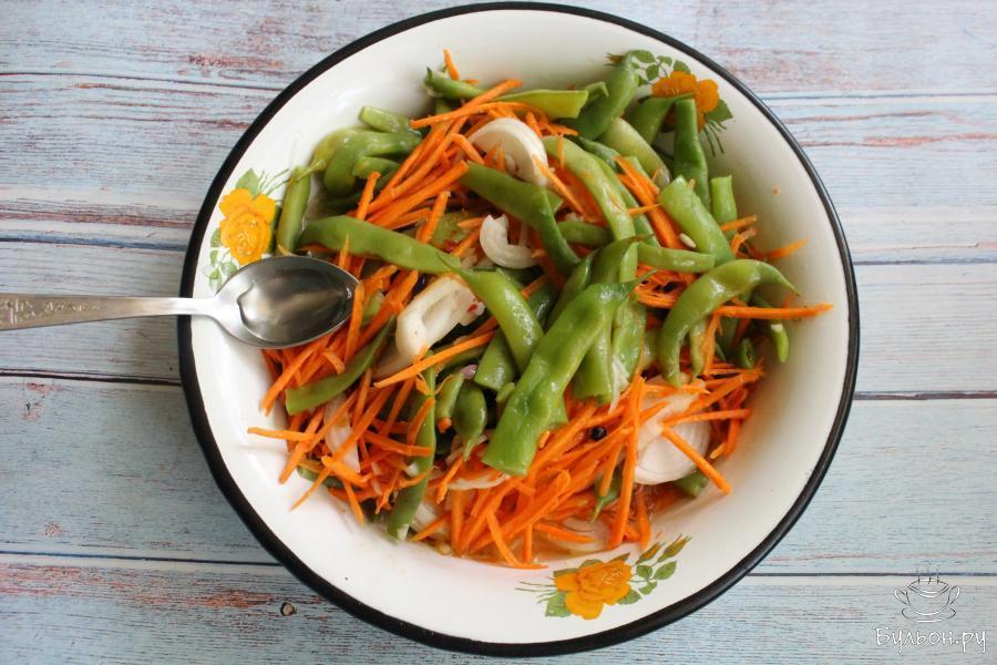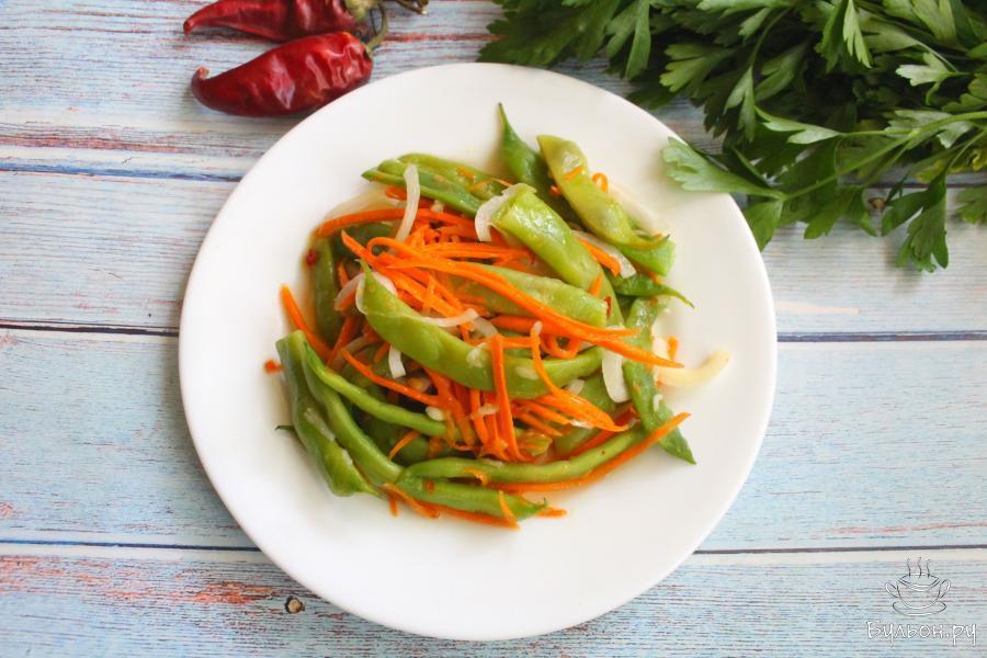 Невзирая на то, что салат из стручковой фасоли по-корейски острое блюдо, оно все равно отлично подходит для жарких летних дней, потому что закуска подается хорошо охлажденная. Закуска получается освежающая, прохладная, сочная, легкая и очень вкусная. Любители острых блюд оценят это блюдо по достоинству. Такую закуску готовить легко и просто, а результат вас несомненно порадует. Чем дольше фасоль стоит, тем вкуснее становится.