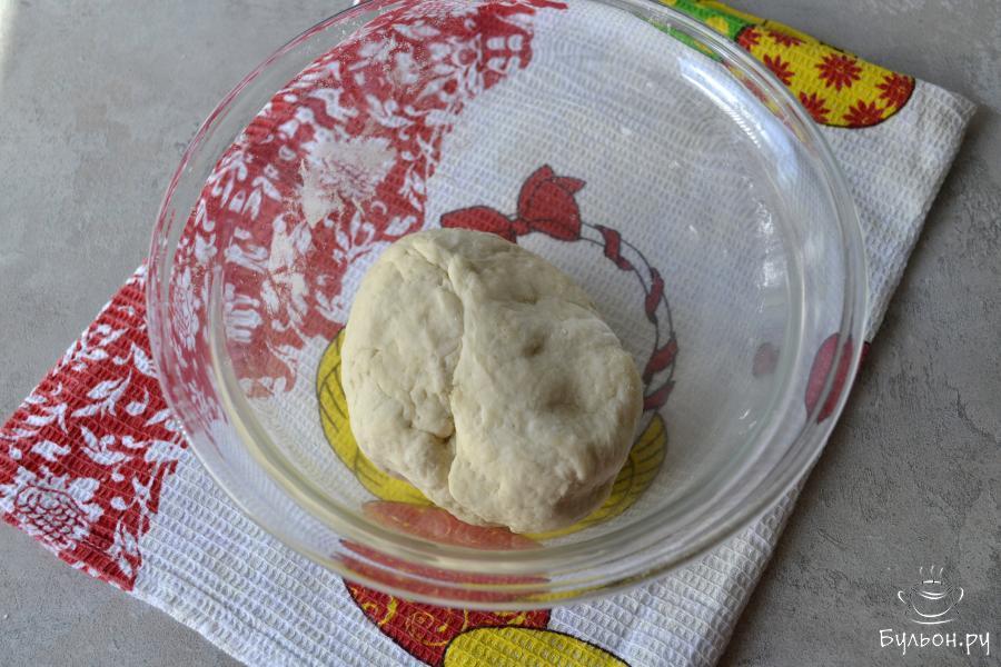 4. Затем замесите тесто руками. Готовый шар теста округлите, затяните миску пищевой пленкой и оставьте хотя бы на полчаса, чтобы тесто "отдохнуло".