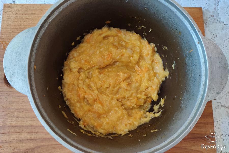 4. Поместить все овощи в казанок, добавить соль и майонез. Размешать и поставить на небольшой огонь тушиться, прикрыв крышкой. Тушить 10-15 минут.