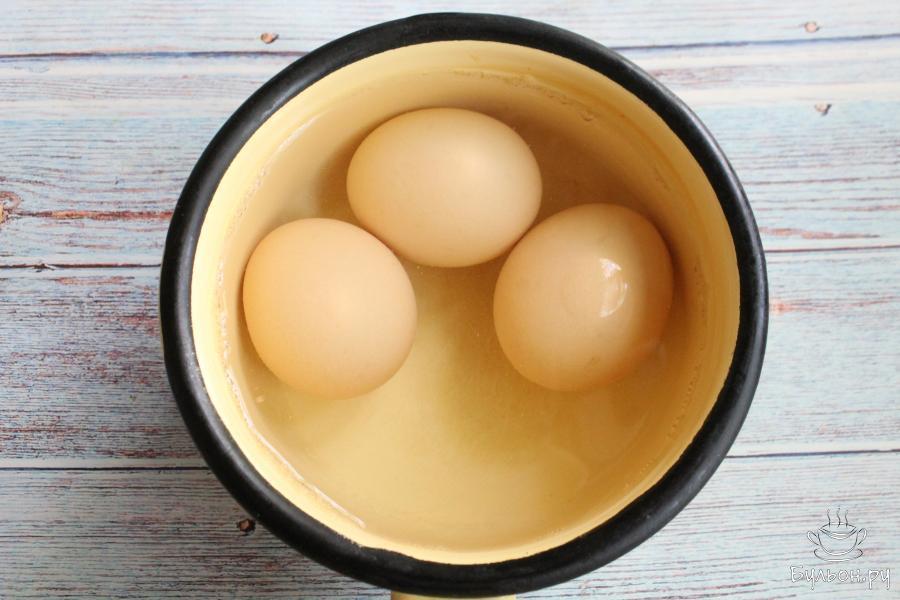 5. Между тем приготовим соус. Варим яйца вкрутую, в течении 10 минут после закипания воды, остудим яйца и почистим.