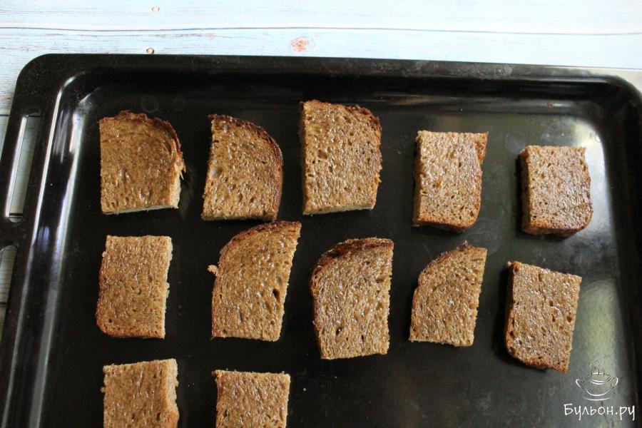 3. Выкладываем хлеб на противень. Духовку разогреваем до 120 градусов. Запекаем хлеб с двух сторон, по 3-4 минуты с каждой стороны.
