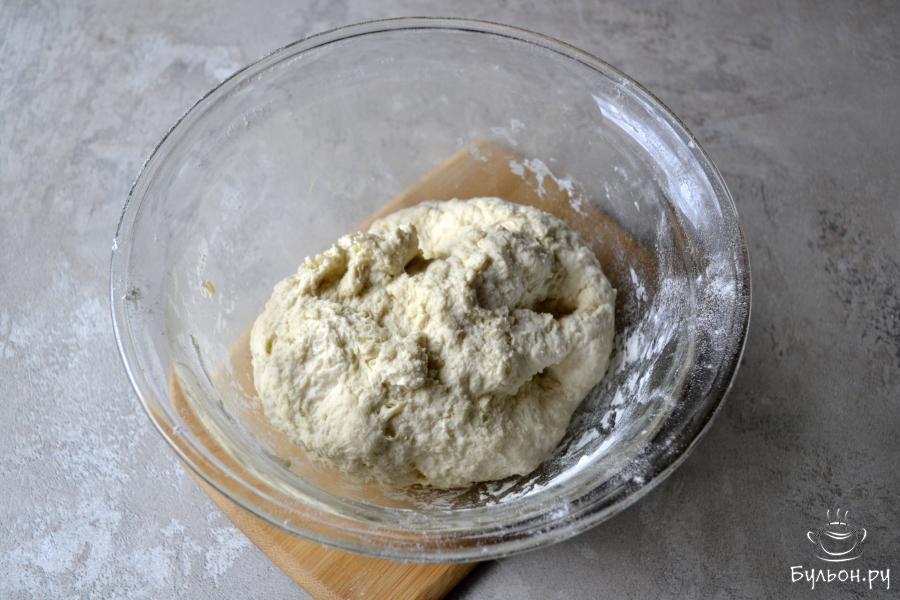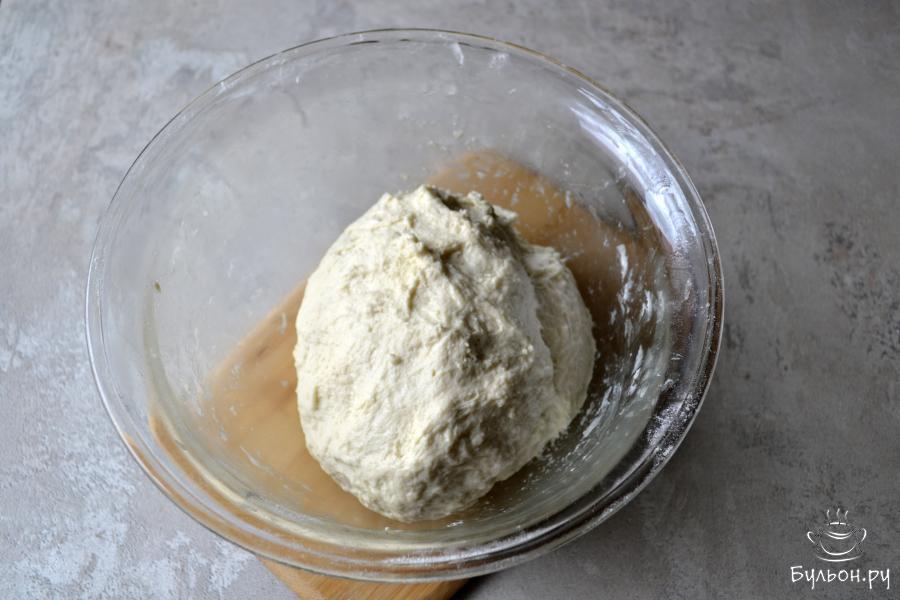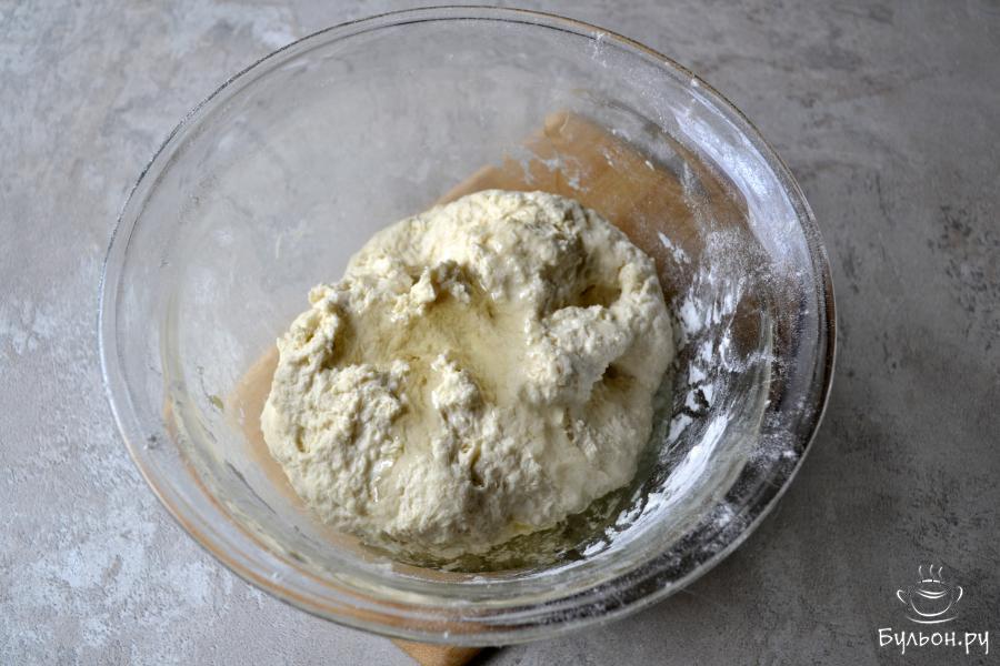 7. И еще раз окончательно замесите тесто. Округлите его и накройте миску пищевой пленкой. Оставьте тесто для подъема при комнатной температуре.