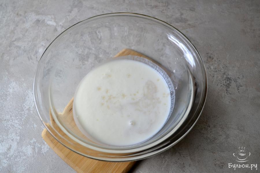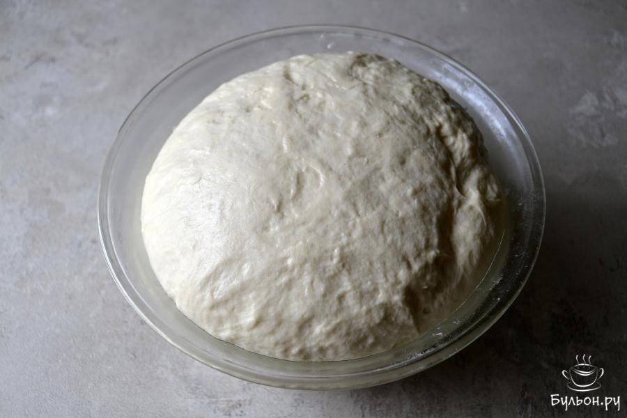 8. Через час-полтора, в зависимости от активности дрожжей, тесто хорошо поднимется. Обомните его руками.