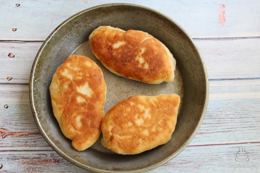 12. Пирожки обжариваем на сковороде, с оставшимся хорошо разогретым маслом. Обжариваем пирожки до румяного цвета с двух сторон по 3-4 минуты.